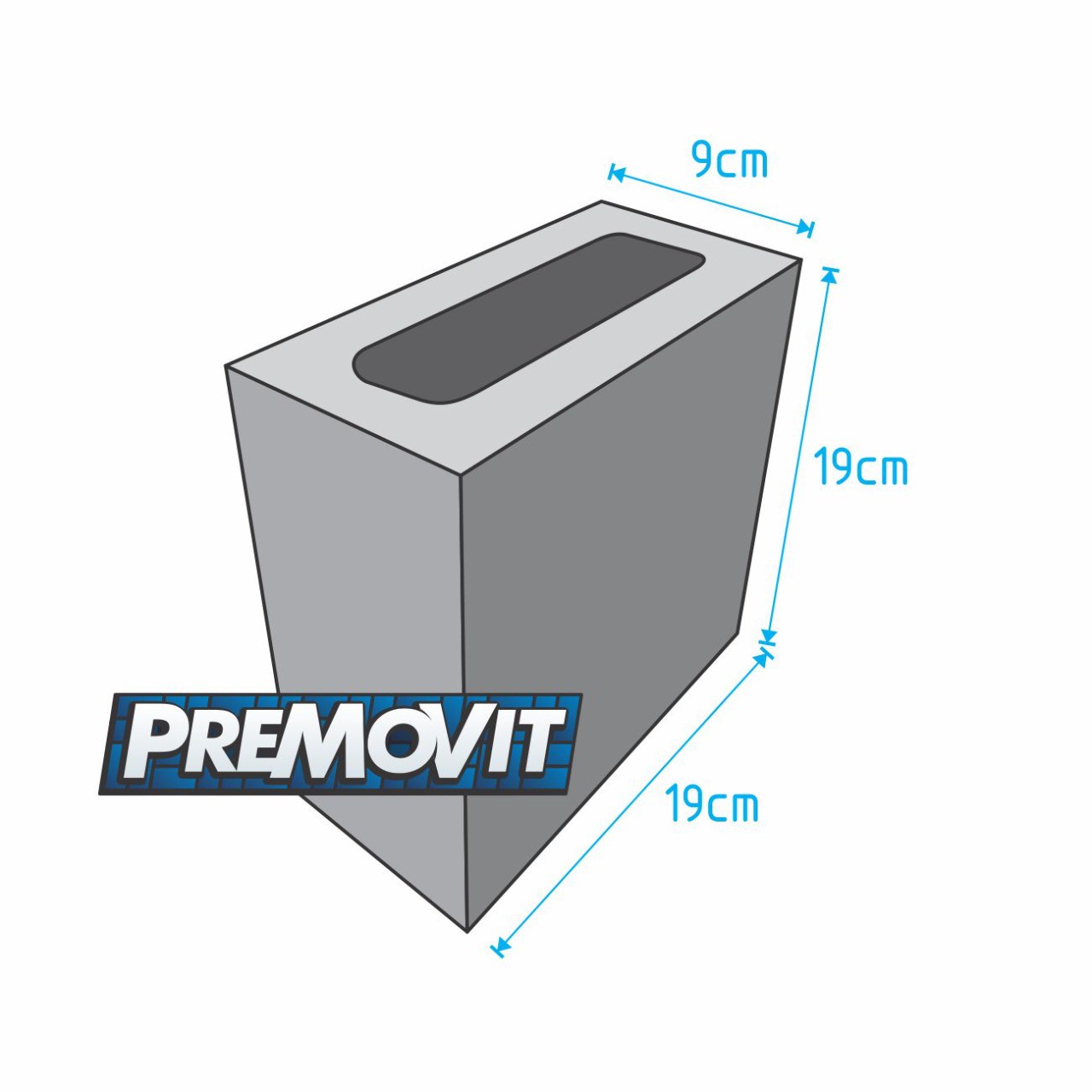 O MEIO BLOCO tem tamanho de 19cm x 19cm, podendo ter a largura de 9 ou 14cm. Já o BLOCO CALHA tem tamanho 19cm de altura x 39cm de comprimento, podendo também ter a largura de 9 ou 14cm.
